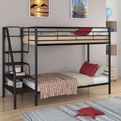 Материал каркаса: стальная труба. Все металлические элементы кровати покрыты износоустойчивой полимерной порошковой краской без запаха. Ступени лестницы из ЛДСП. Двухъярусную кровать можно собирать и разбирать неограниченное количество раз, и от этого она не потеряет в прочности и качестве. Гарантия производителя: 18 мес.