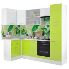 Кухонный гарнитур Люкс угловой 1200*2450 Белый глянец/Лайм глянец (модульный) Горизонт